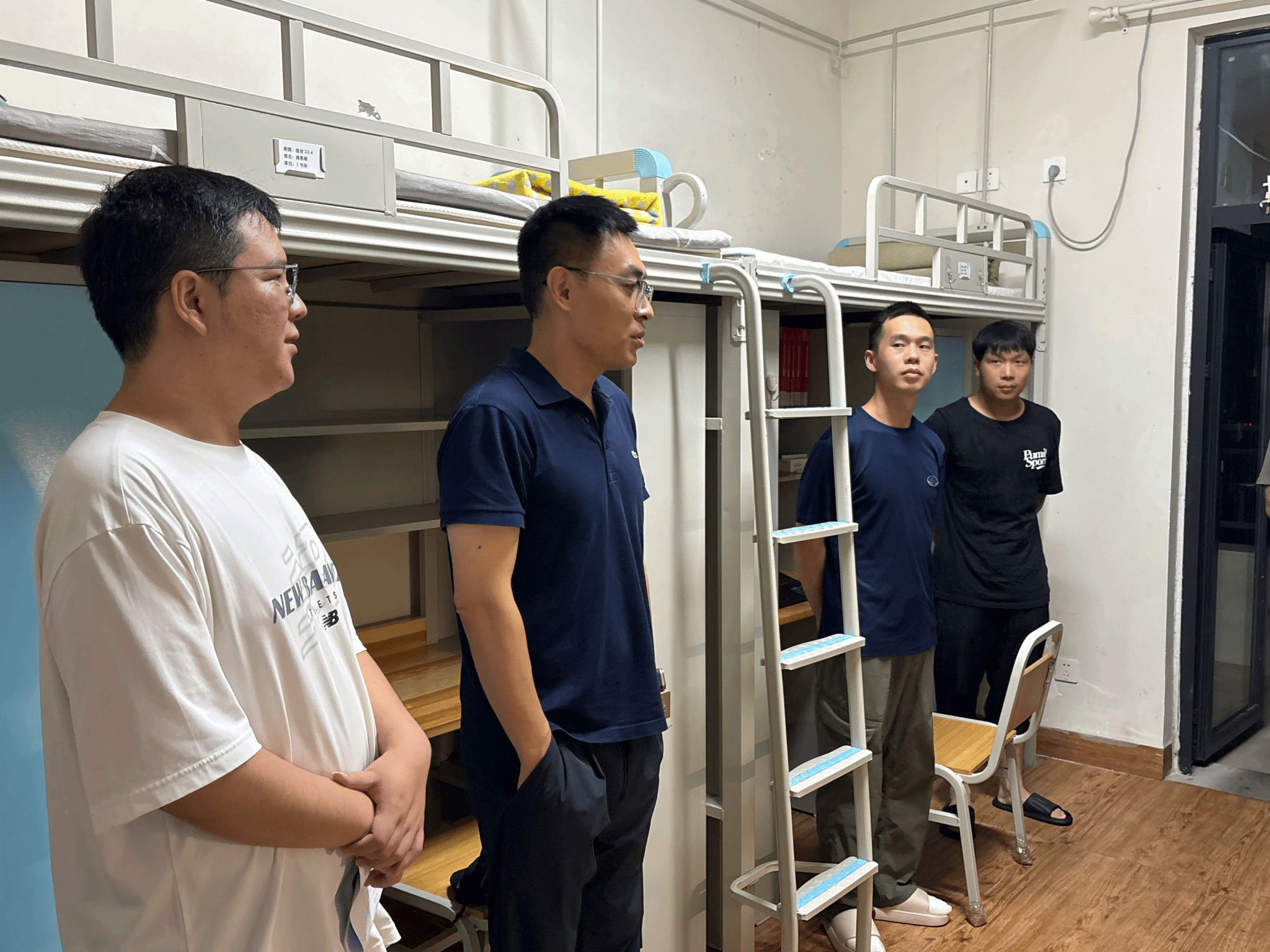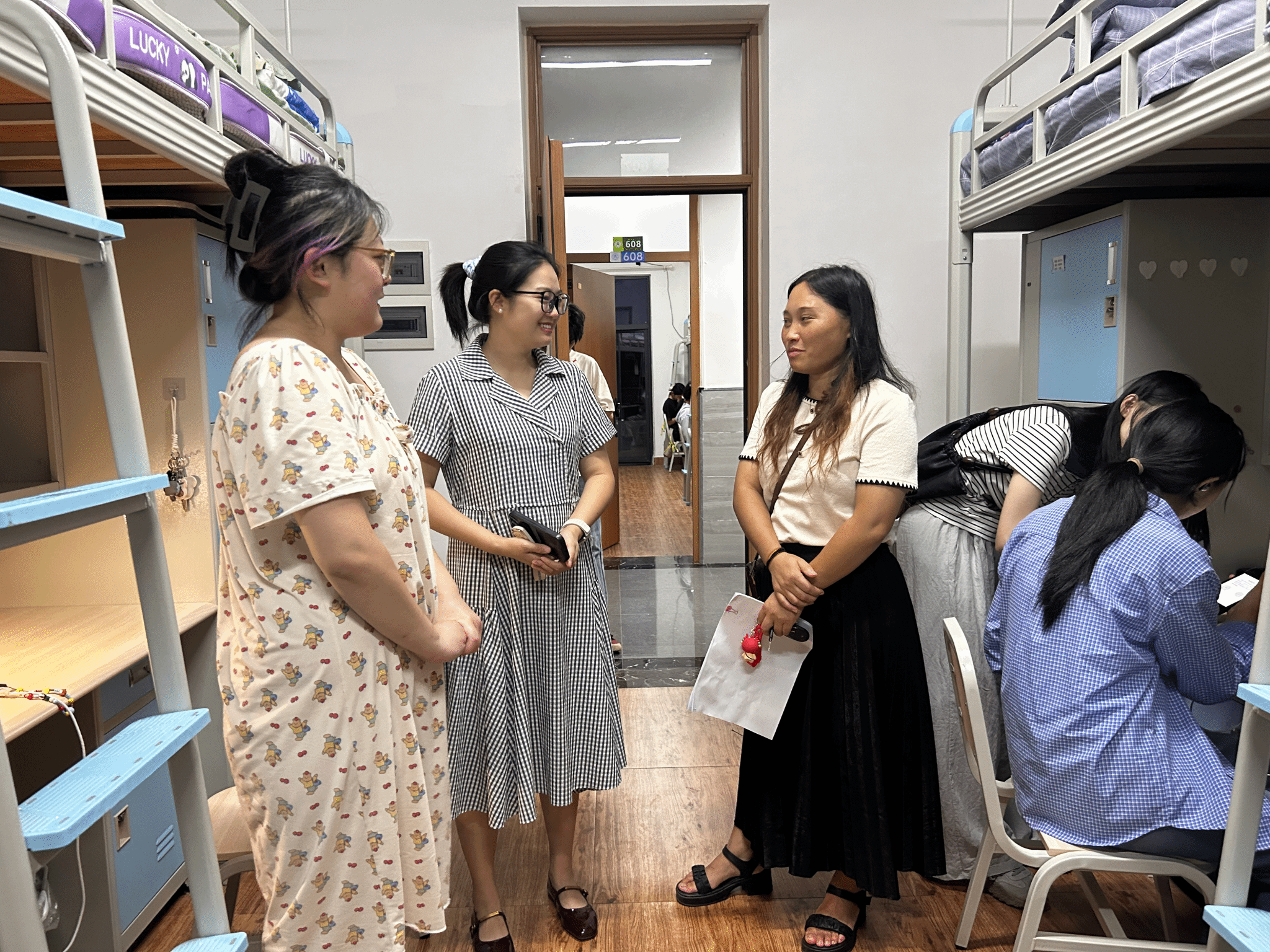 为深入了解 2025 级新生入学后的生活与学习适应情况,助力新生尽快融入大学新环境,9 月 16 日晚,学院党委书记王照安、副院长赵涛、党委副书记罗冬丽等领导干部带领学工办辅导员及新生班主任,一同走访 了2025 级新生寝室。