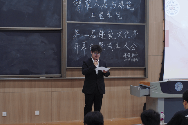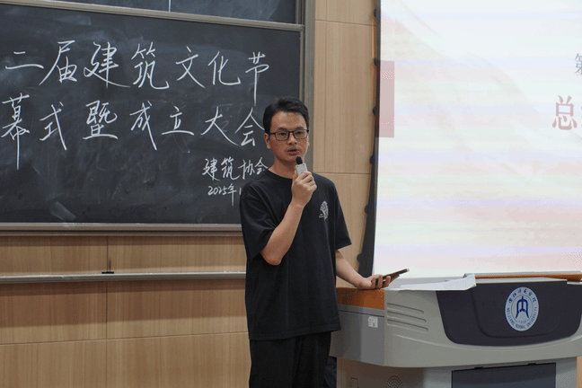 随后,建筑协会会长龚云淇汇报了协会未来工作及发展方向,介绍了本次建筑文化节的各类赛事,号召同学们积极参与。