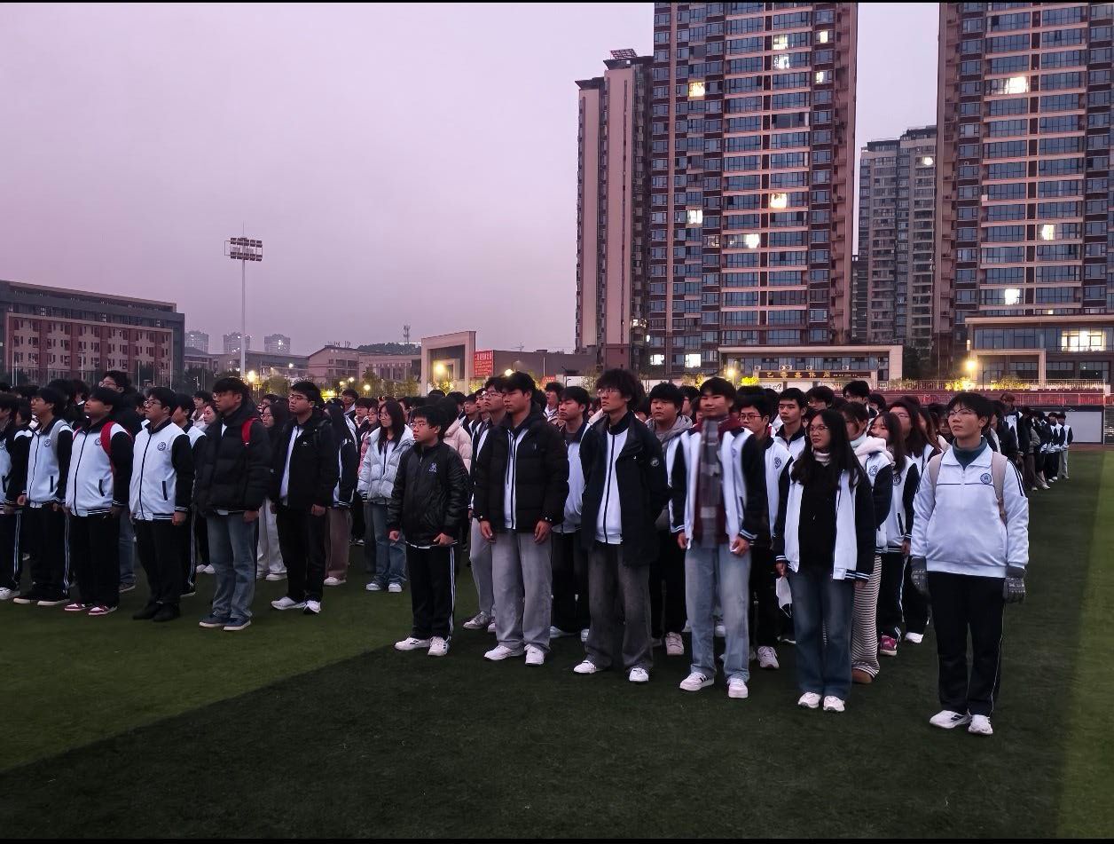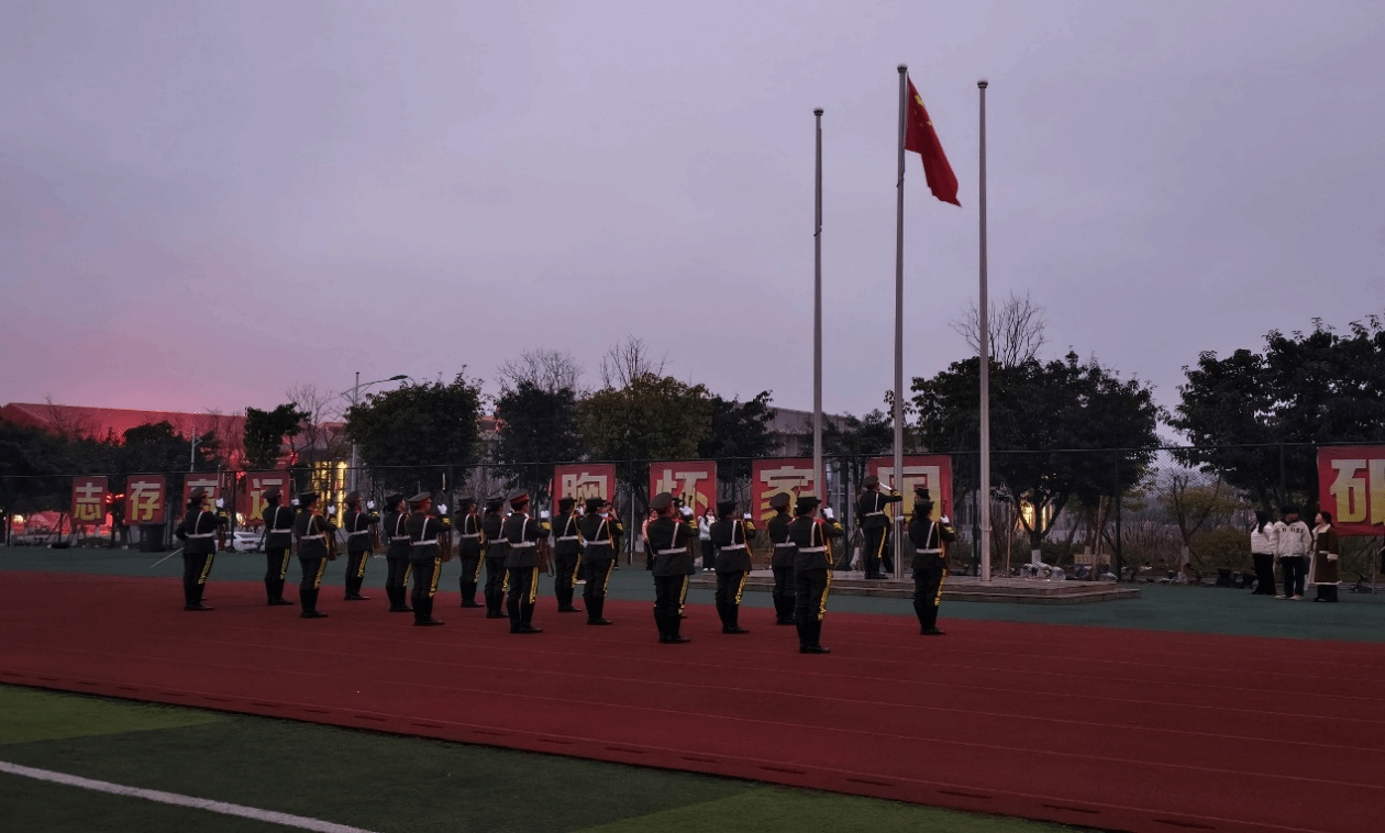 当《义勇军进行曲》激昂奏响,升旗手奋力挥臂将国旗抛出,五星红旗在晨曦中缓缓升起、迎风飘扬。全体人员肃立行注目礼,高声齐唱国歌,嘹亮的歌声穿透寒风,回荡在校园每个角落,浓厚的爱国之情在每个人心中激荡。仪式上,学生代表谢旺以“担当使命,奋斗青春”为题发言,结合新时代发展理念分享对爱国精神的深刻感悟,号召同学们将个人理想融入民族复兴伟业,以青春之力勇担使命,成长为新时代的先锋力量。